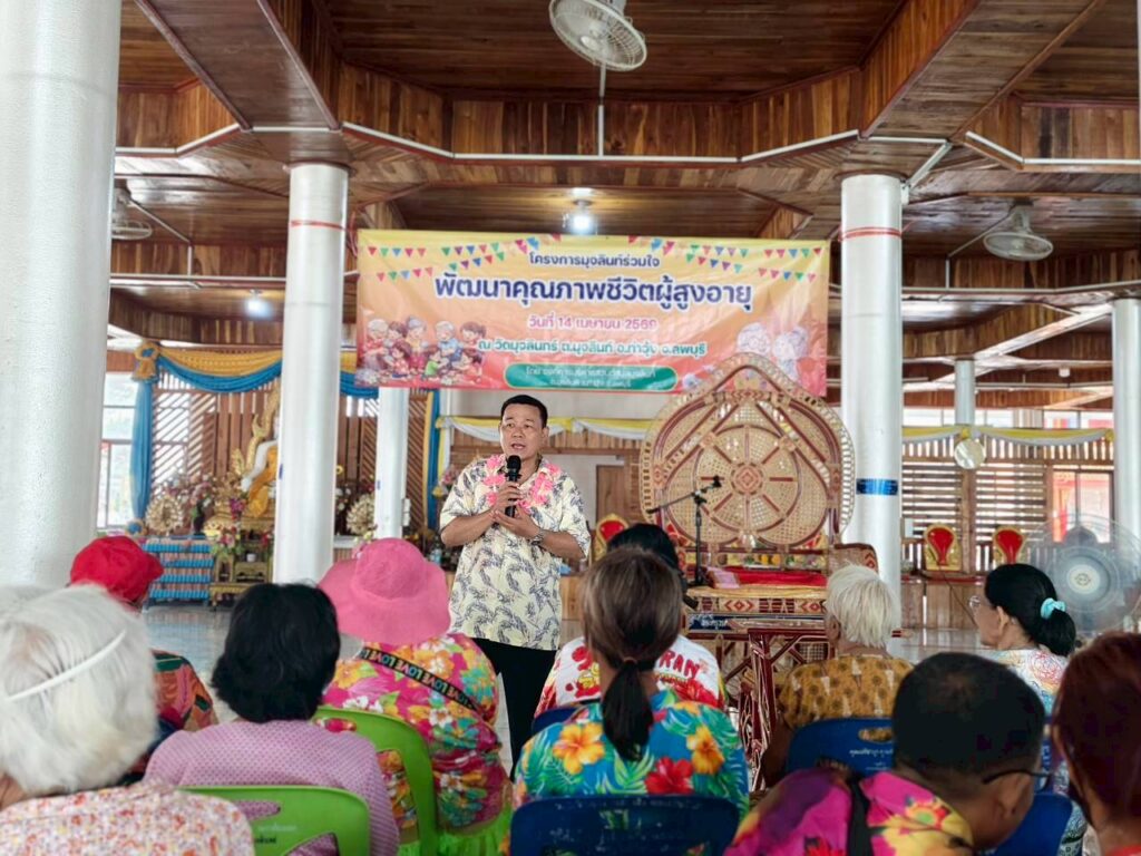 องค์การบริหารส่วนตำบลมุจลินท์ จัดทำโครงการมุจลินท์ร่วมใจพัฒนาคุณภาพชีวิตผู้สูงอายุ เพื่อให้ผู้สูงอายุ ครอบครัว ชุมชน ได้มีส่วนร่วมในการส่งเสริมและพัฒนาคุณภาพชีวิตของผู้สูงอายุ ได้ฟื้นฟูสุขภาพกายใจ ได้มีกิจกรรมร่วมกัน เกิดความสัมพันธ์อันดีต่อกันในชุมชน ณ วัดมุจลินทร์ หมู่ที่ 4 ตำบลมุจลินท์ อำเภอท่าวุ้ง จังหวัดลพบุรี