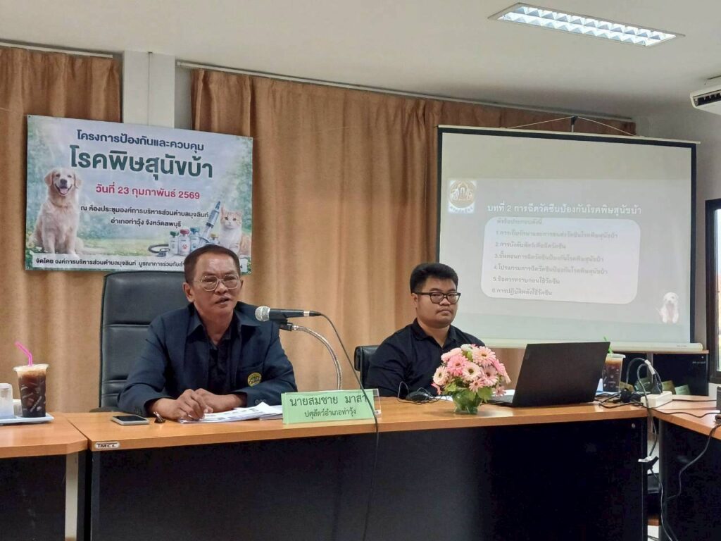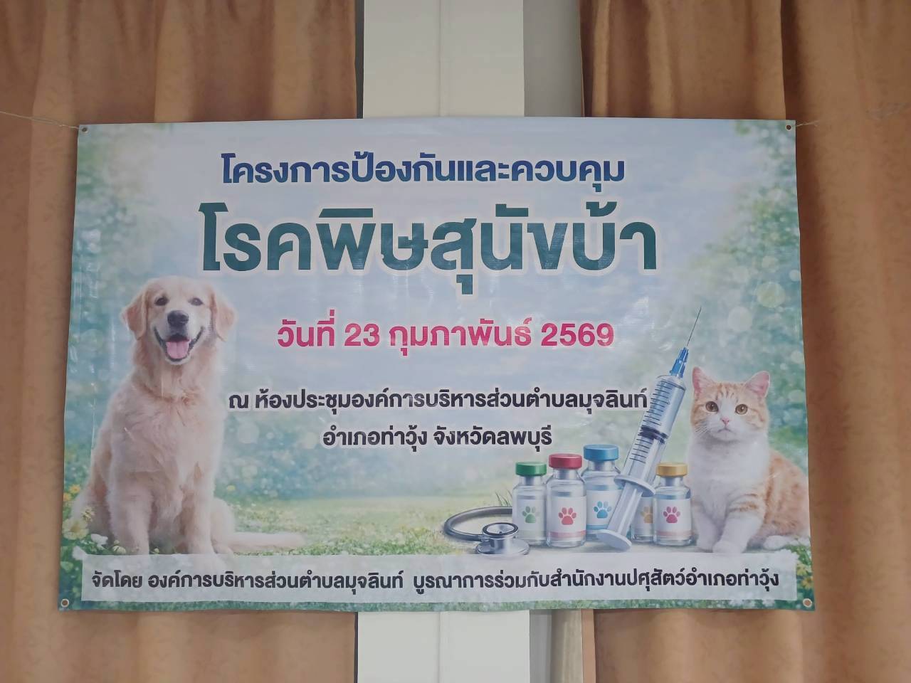 องค์การบริหารส่วนตำบลมุจลินท์ ได้จัดทำโครงการป้องกันและควบคุมโรคพิษสุนัขบ้า เพื่อสร้างความรู้ความเข้าใจแก่ประชาชนเกี่ยวกับโรคพิษสุนัขบ้า ตระหนักถึงอันตรายของโรคพิษสุนัขบ้าและดูแลสัตว์เลี้ยงอย่างถูกต้อง ในวันที่ 23 กุมภาพันธ์ 2569 ณ ที่ทำการองค์การบริหารส่วนตำบลมุจลนทิ์