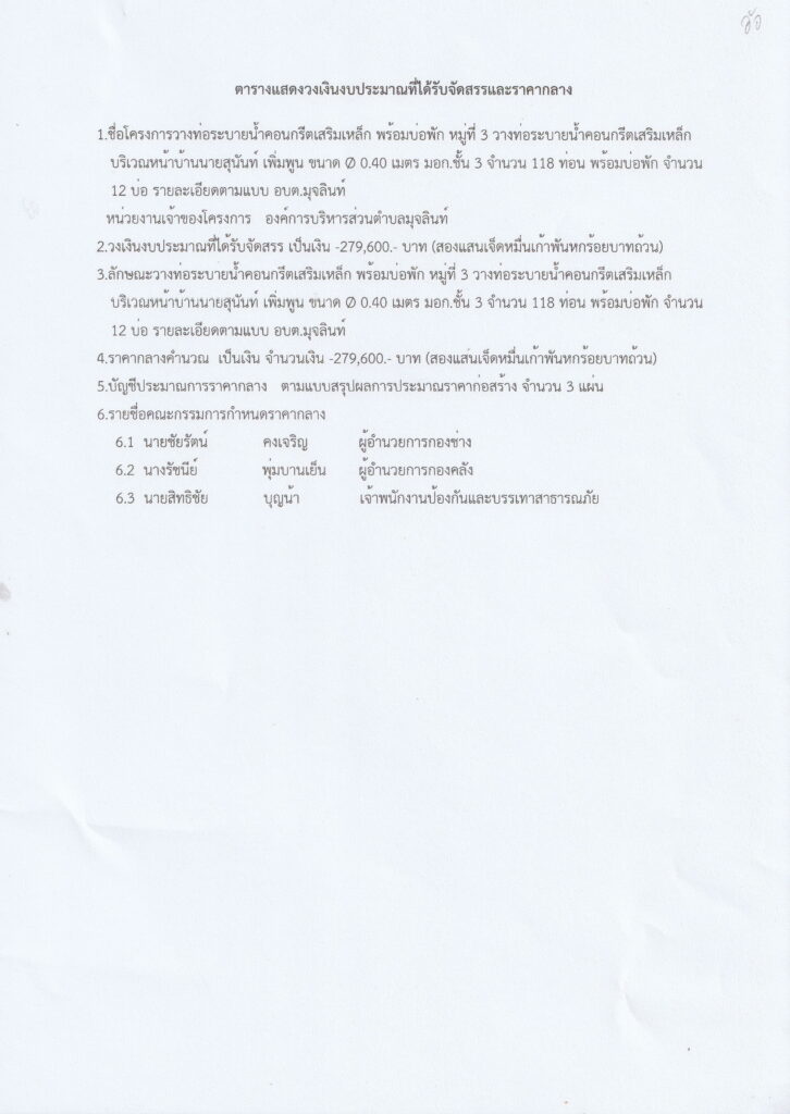 ตารางแสดงวงเงินโครงการวางท่อระบายน้ำคอนกรีตเสริมเหล็ก พร้อมบ่อพัก หมู่ที่ 3 วางท่อระบายน้ำคอนกรีตเสริมเหล็กบริเวณหน้าบ้านนายสุนันท์ เพิ่มพูน ขนา 0.40 เมตร มอก.ชั้น 3 จำนวน 118 ท่อน พร้อมบ่อพัก จำนวน 12 บ่อ ประกาศต่างๆ เกี่ยวกับการจัดซื้อจัดจ้างหรือการจัดหาพัสดุ 8 พฤษภาคม 25678 พฤษภาคม 2024 peach1980 FacebookFacebookXTwitterLINELine